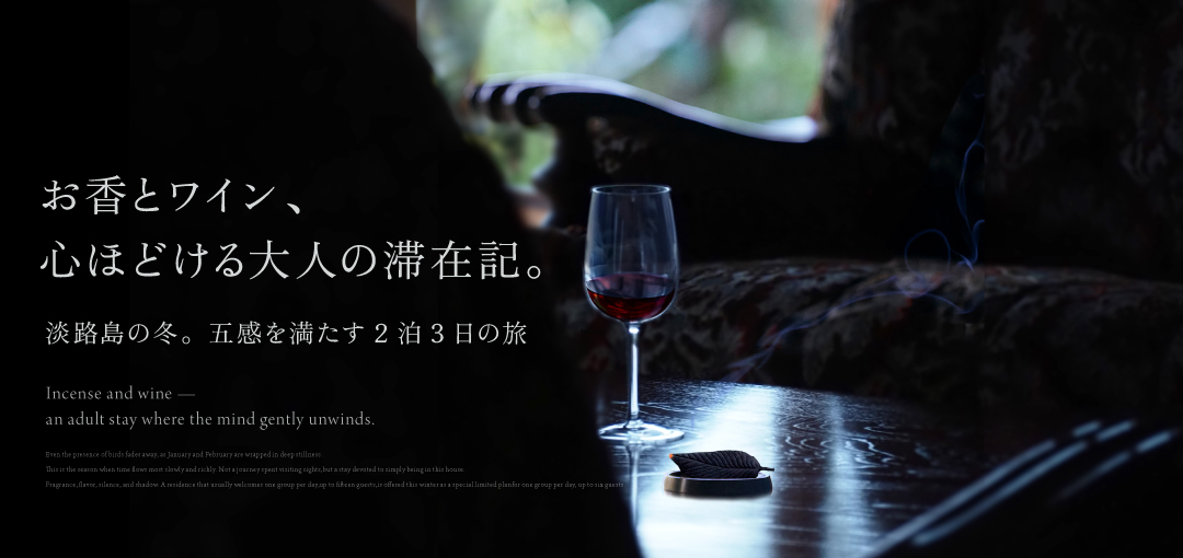 淡路島にある一日一組限定、築100年のお屋敷宿『別邸仙久』でございます。田畑と伝統的な家を残す為、期間限定のお宿としてOpenいたしました。大人はゆっくりと流れる空気や豊かな時間を、子供は自然の美しさを子供だけが持つ感性で感じ取ってもらえる場所になればと願っております。